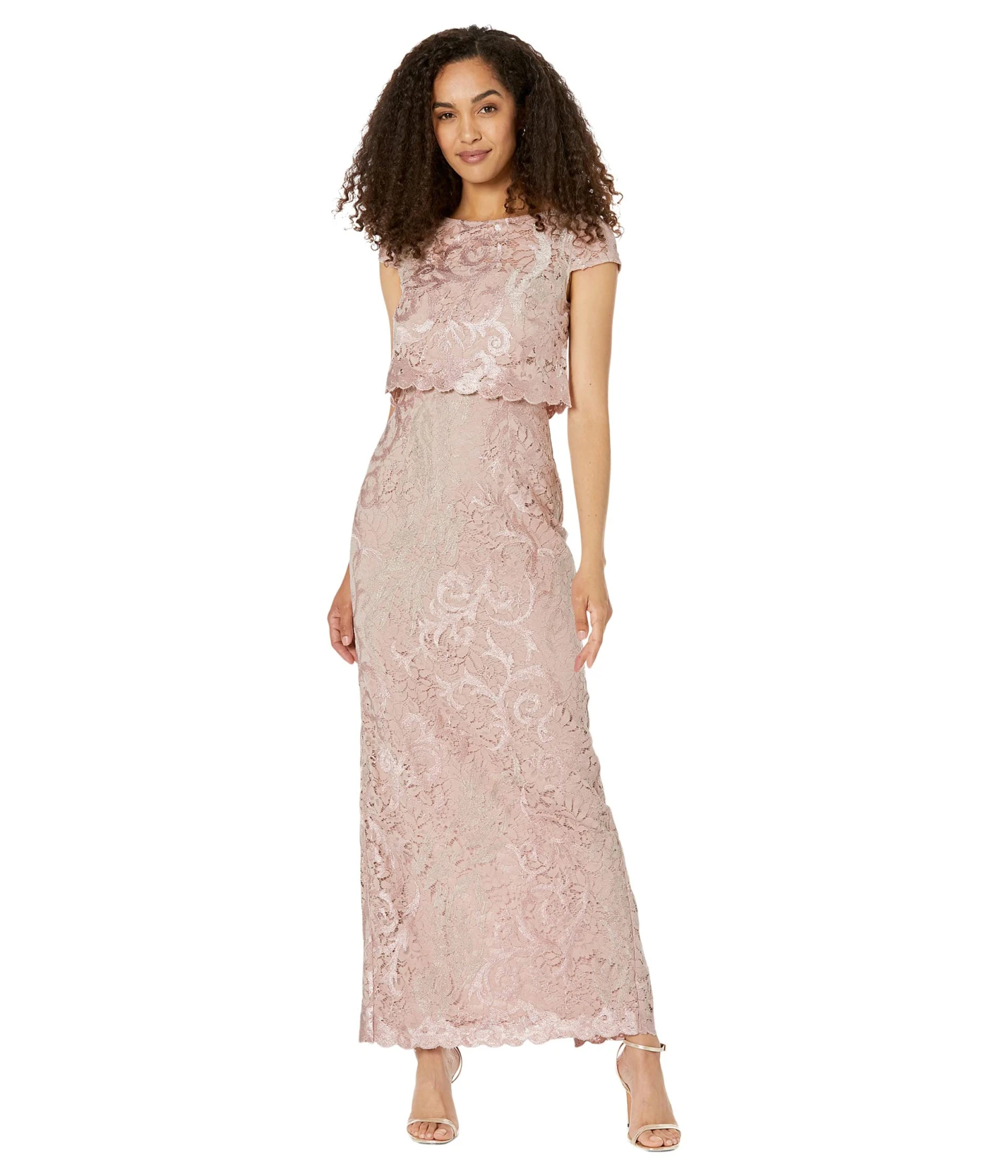 - Show your elegant style in the next family function wearing Adrianna Papell® Embroidered Lace Long Pop Over Mob Column Gown.