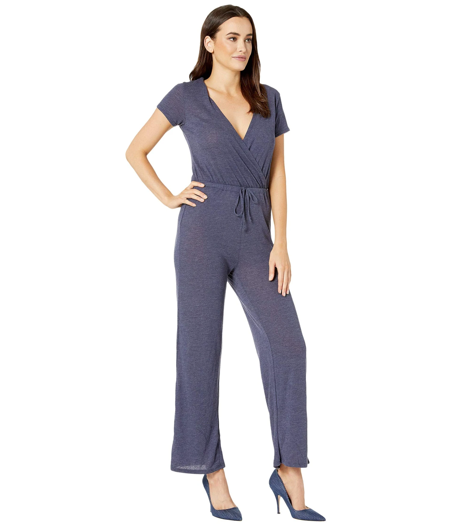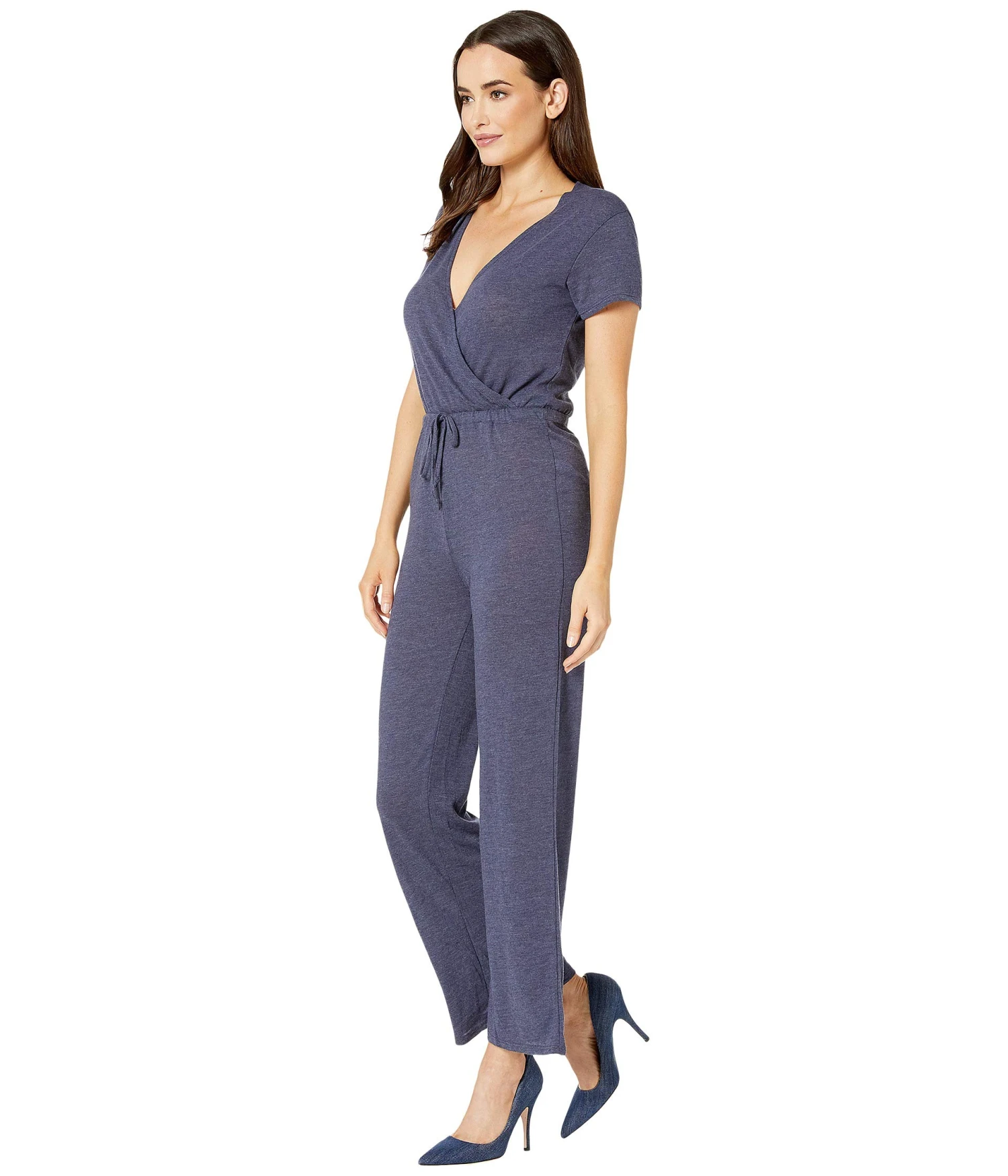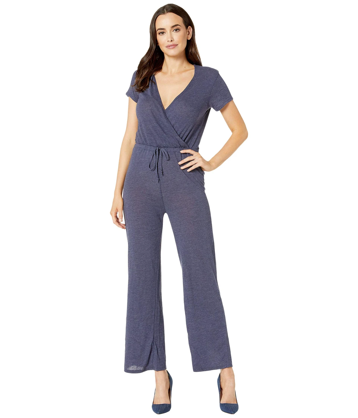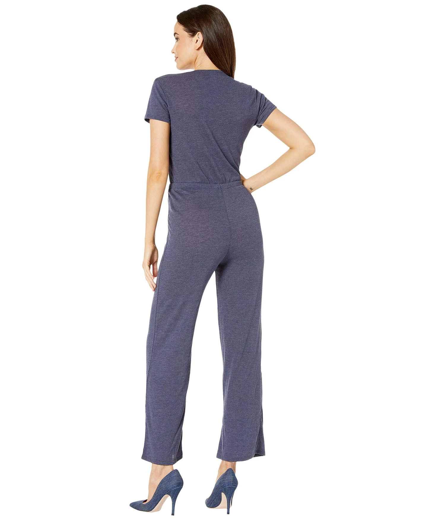 - Wide-leg jumpsuit features a heathered finish on a soft Eco-Jersey® fabrication.