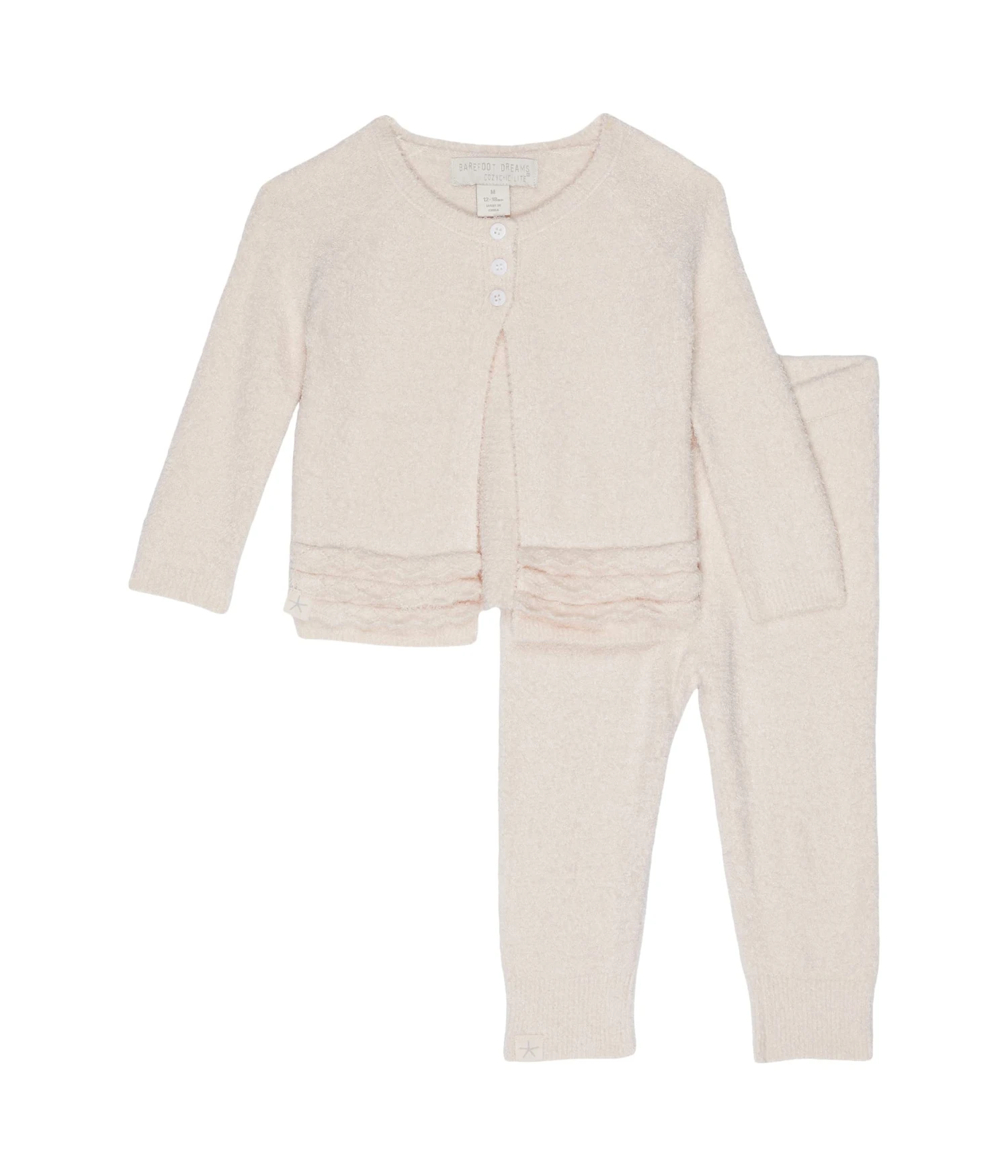 - Stay comfy wearing the three-button Barefoot Dreams® Kids CozyChic® Heirloom Cardi and Pants Set.
