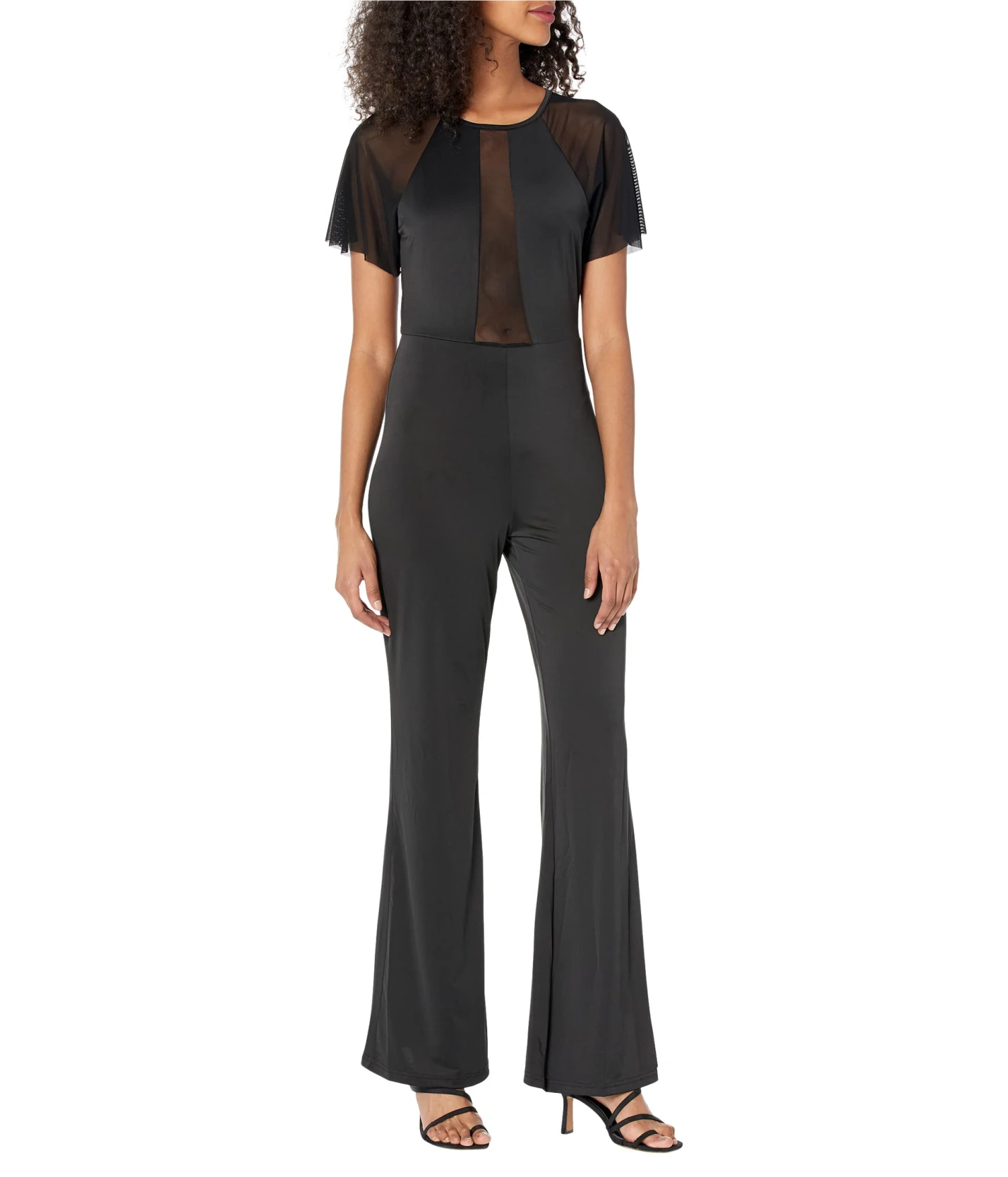 - Dress up or down wearing the Bebe® Mesh Detail Wide Leg Jumpsuit. It hugs your body right and offers a secure fit.