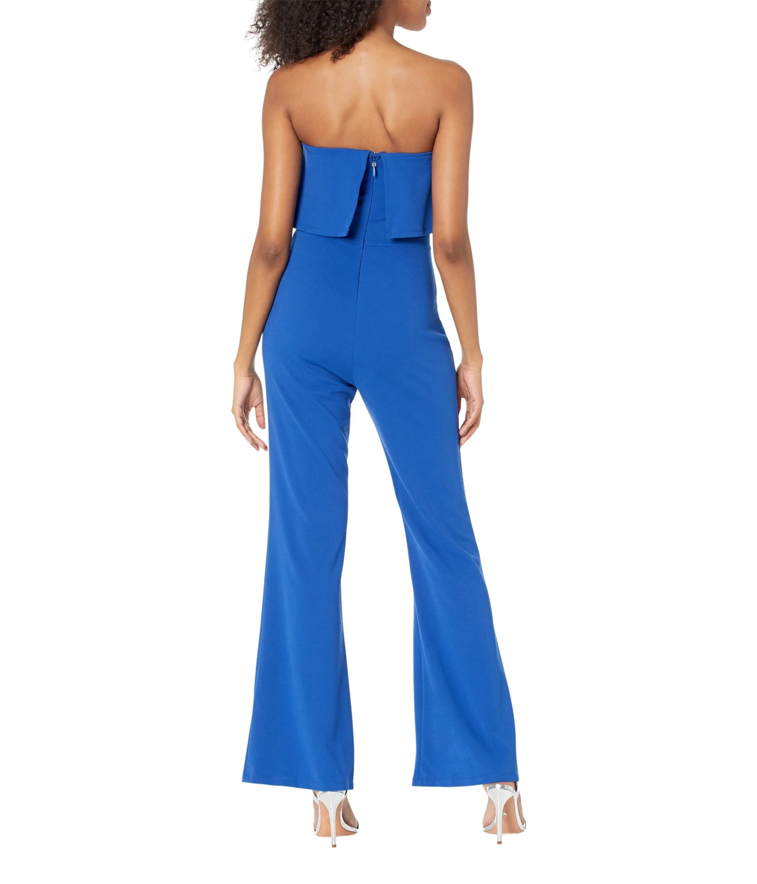 - Take charge of your style game in the bold and powerful statement-making Bebe® Strapless Overlay Jumpsuit with a flounce top.