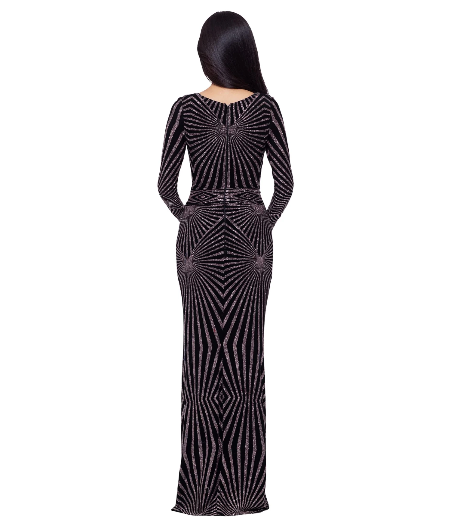 - A geometric pattern all over the Betsy & Adamâ„¢ Long Sleeve Geometric Dress offers a stunning look with its bodycon silhouette.
