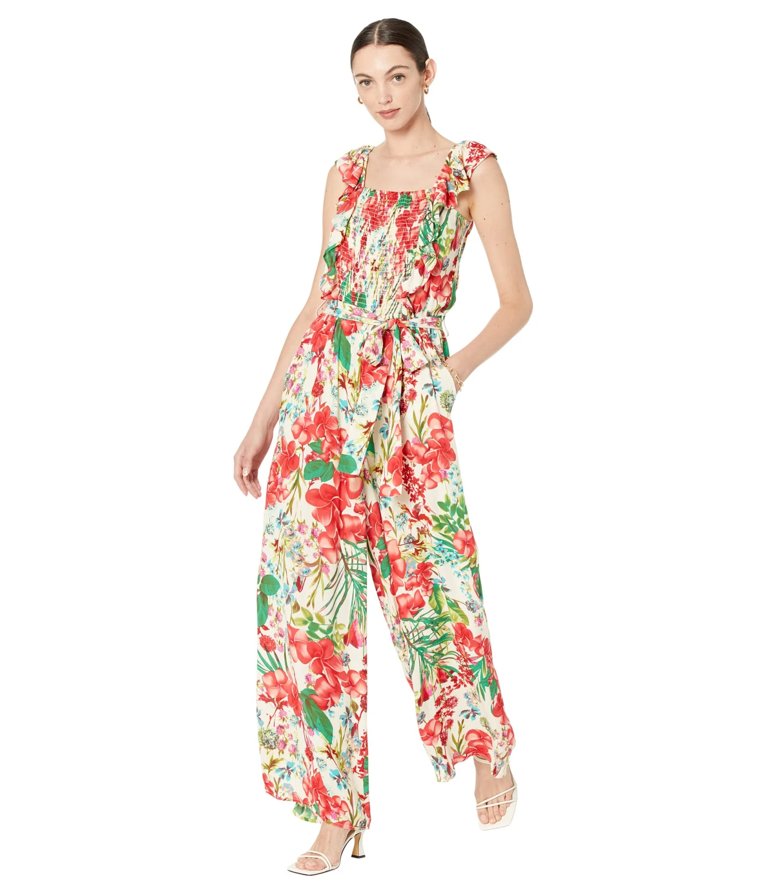 - Stand out in style in the Buffalo David Bittonâ„¢ Beatrix Jumpsuit with Smocked Top and Ruffle Straps.