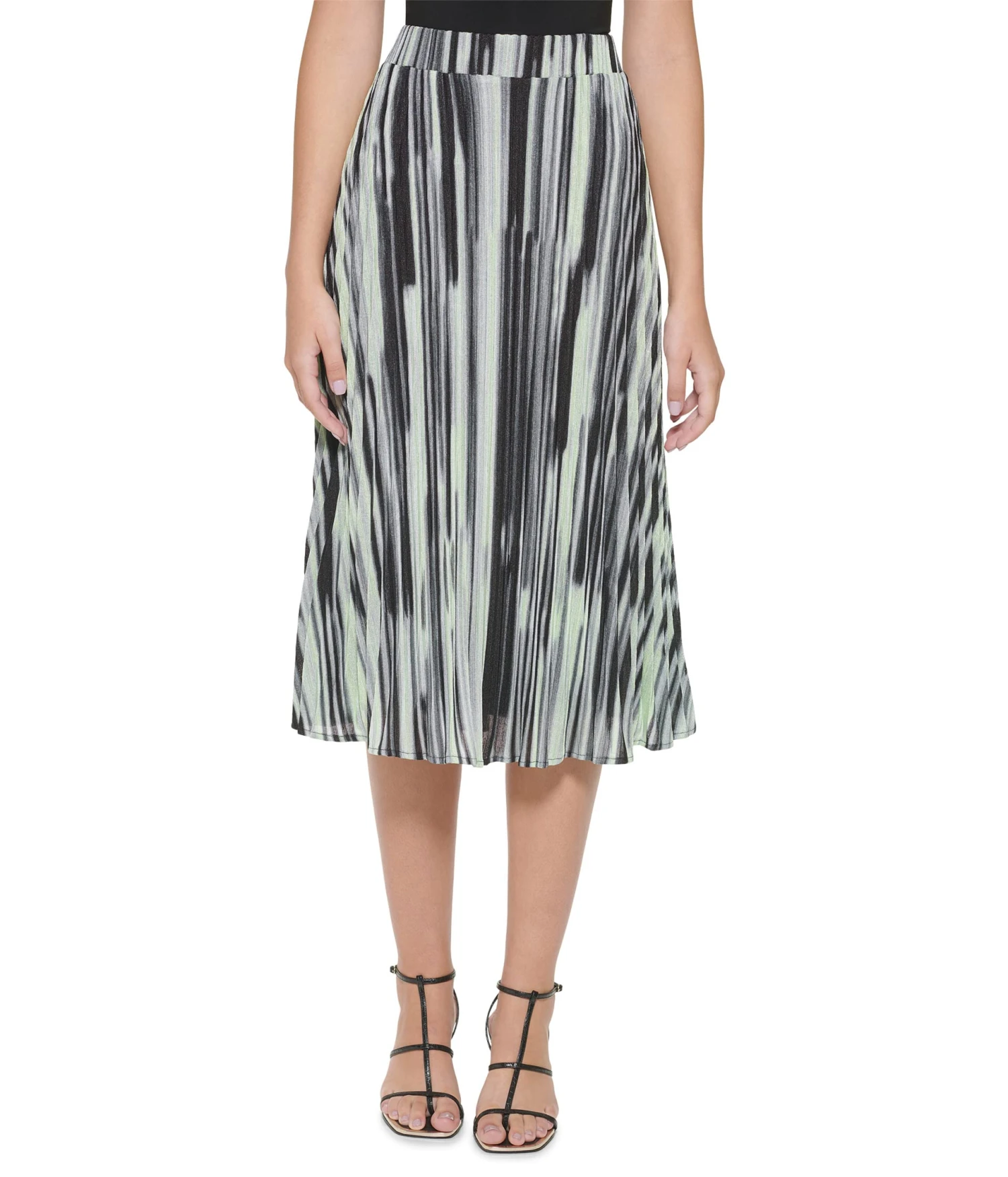 - Make a fashion statement wearing the printed DKNY® Printed Pull-On Pleated Skirt.