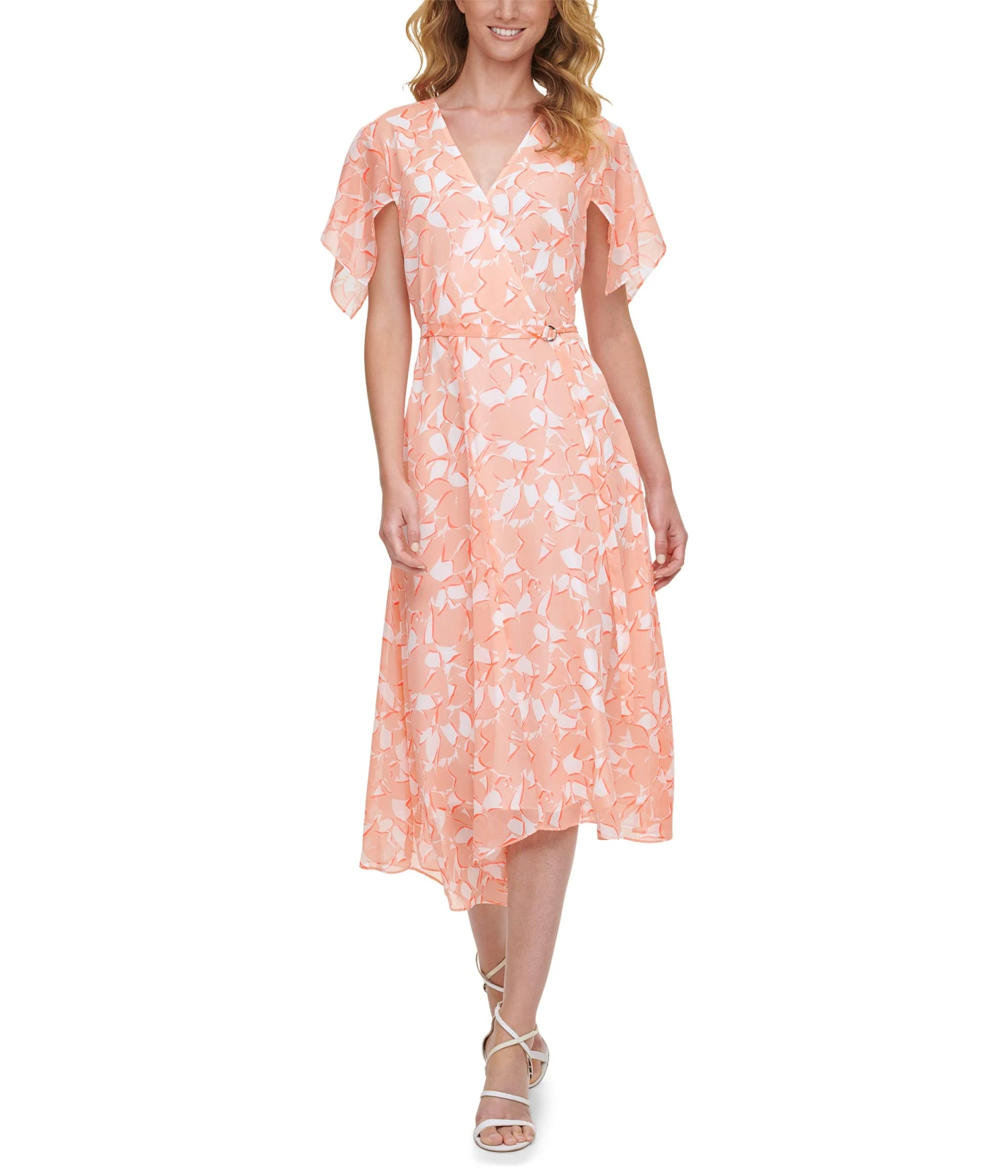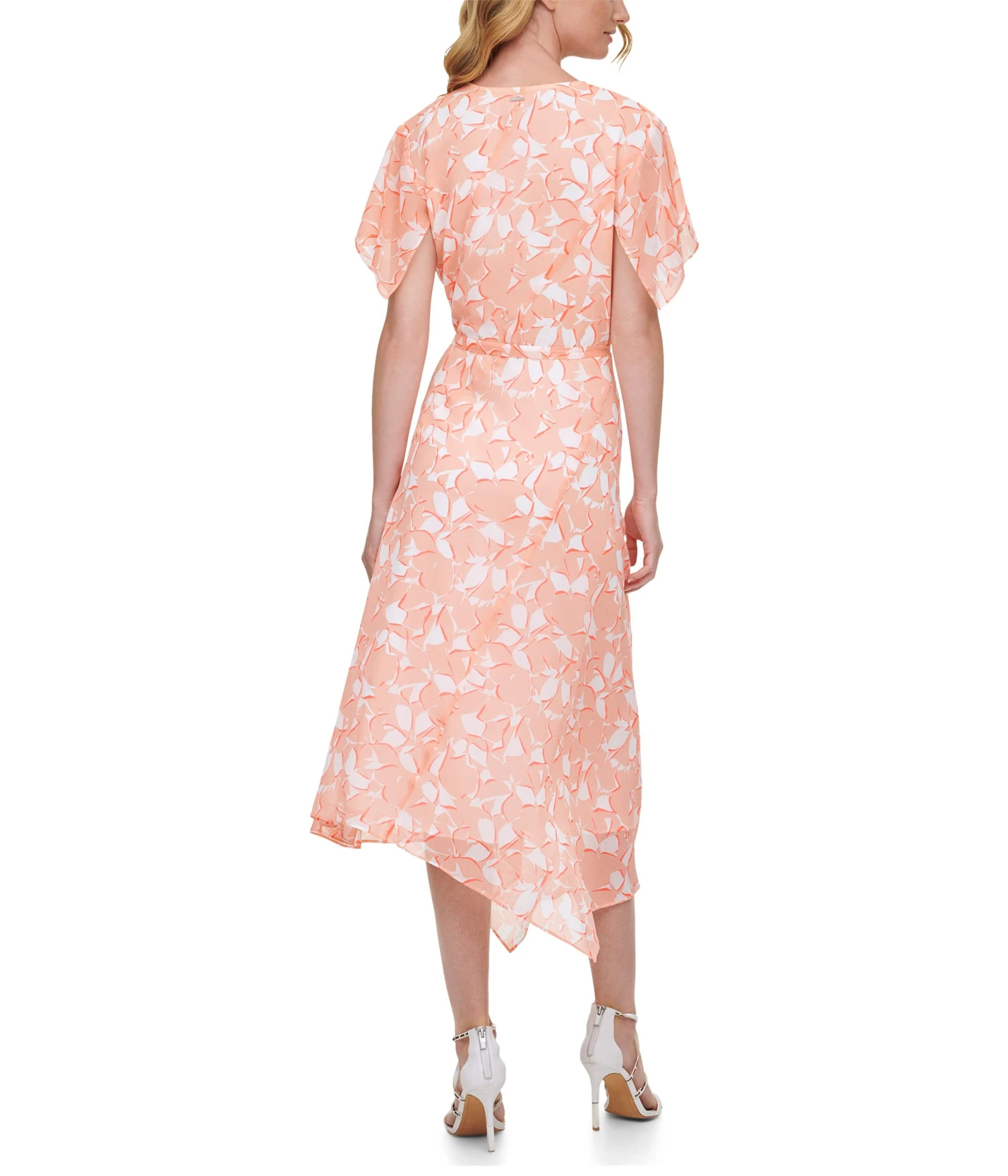 - DKNY® Printed Short Sleeve Front Wrap Dress looks elegant and stylish enough to be worn on special outings!