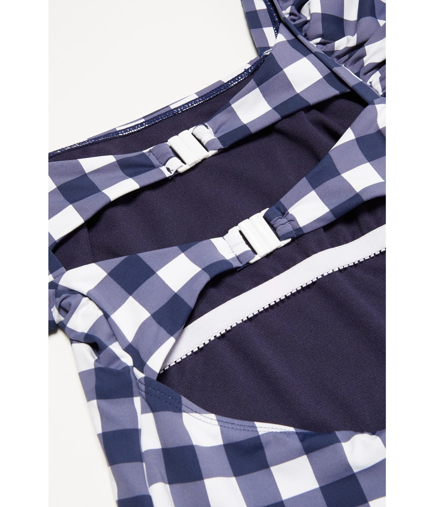 - Allover plaid pattern.