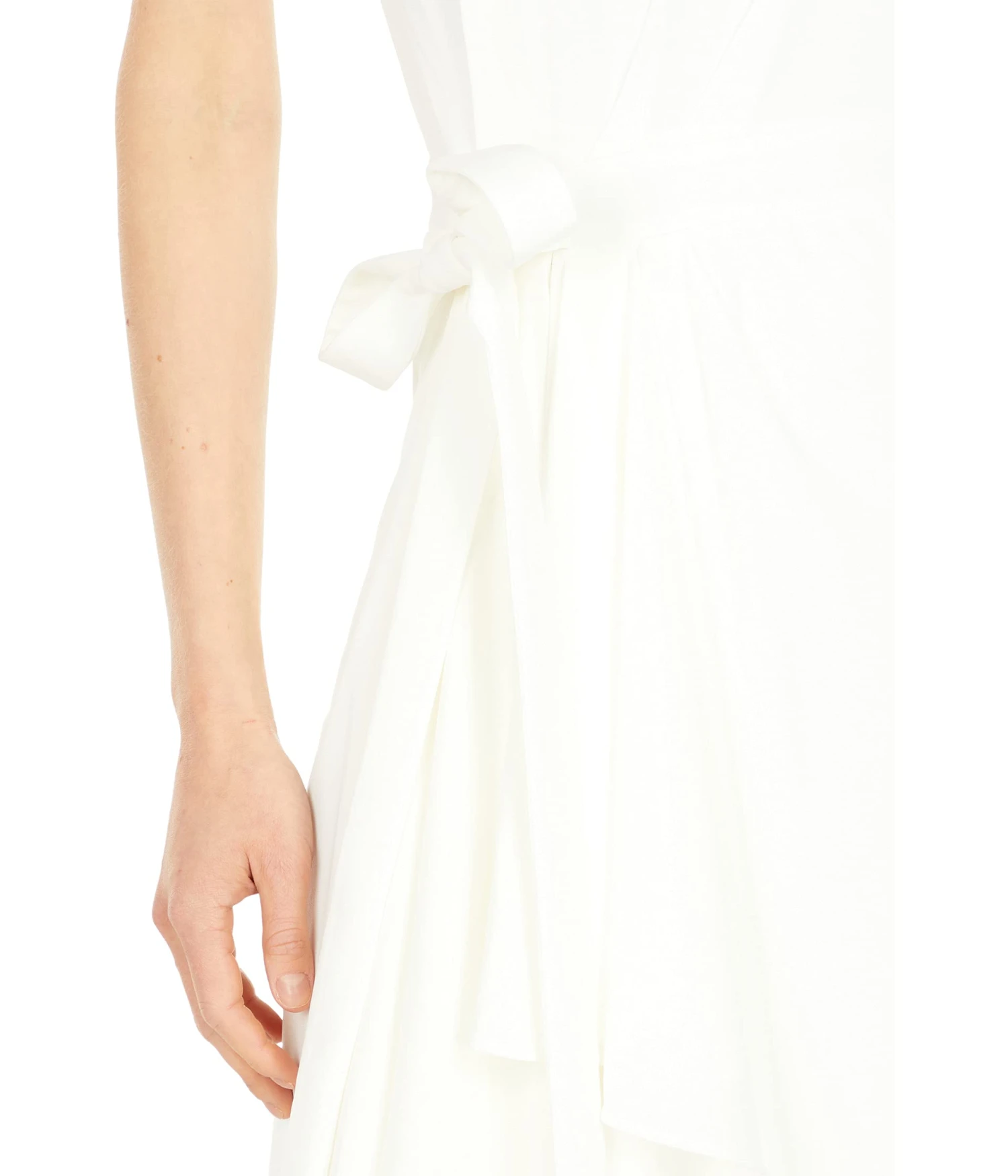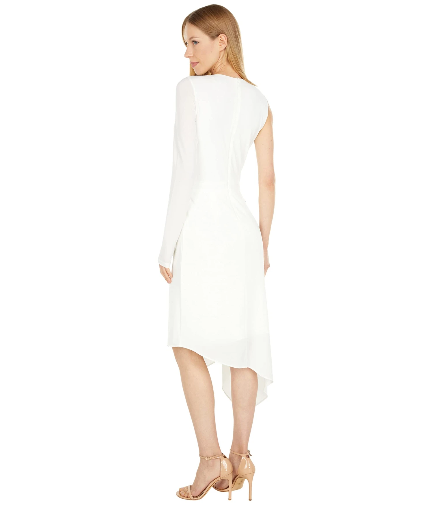 - The HALSTON® Haley Boatneck Dress is a must-have little white dress! Flattering loosely gathered fabric in the skirt leads to the rouched, form fitting body of the dress. The dress is crafted with a pristine blend for shape and stretch.