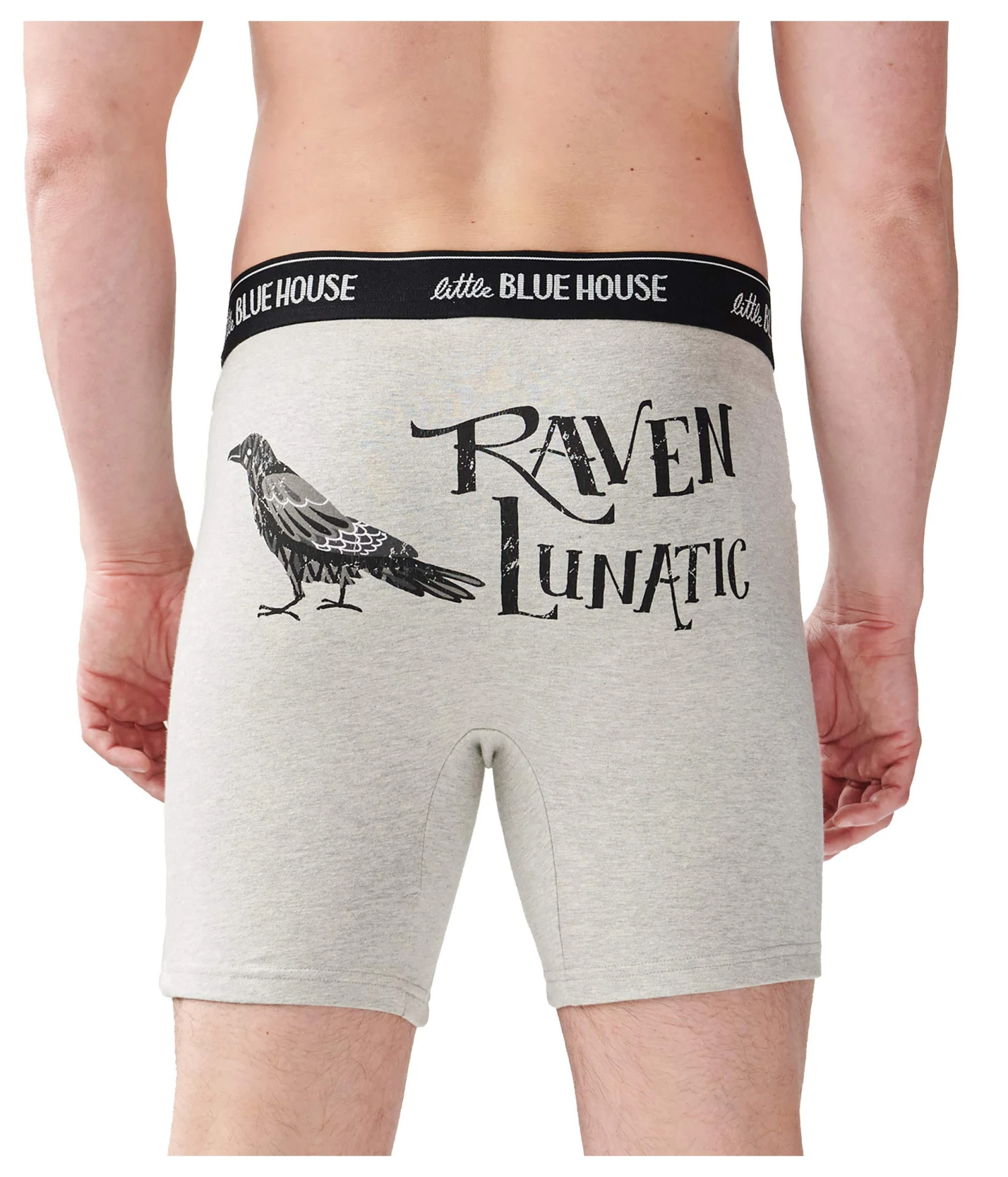 - Quality garments with a sense of humor, the Little Blue House by Hatleyâ„¢ Raven Lunatic Boxer Brief don comical graphics finished in a stretchy, but fitted style.