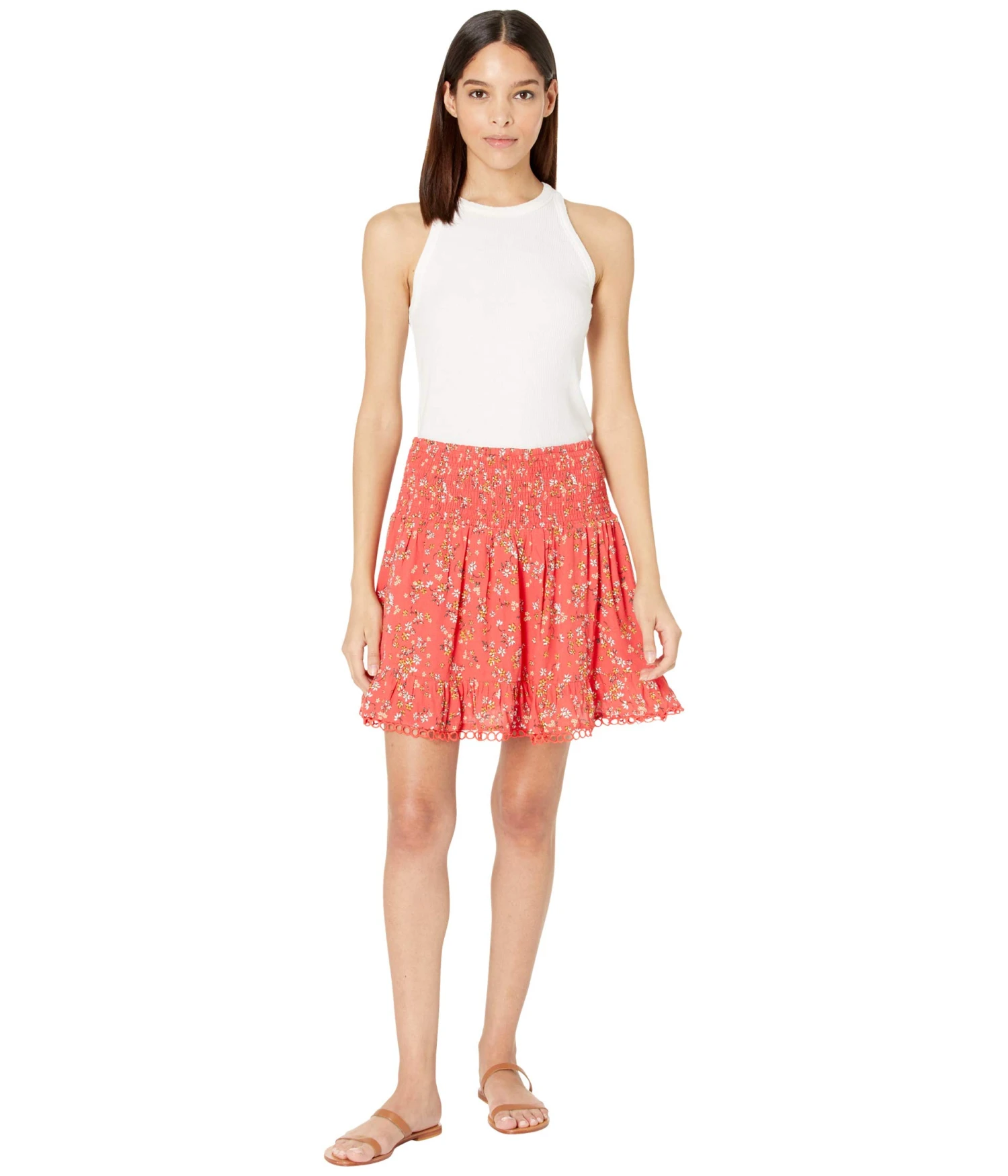 - Delicate miniskirt features elasticized waist for comfortable fit.