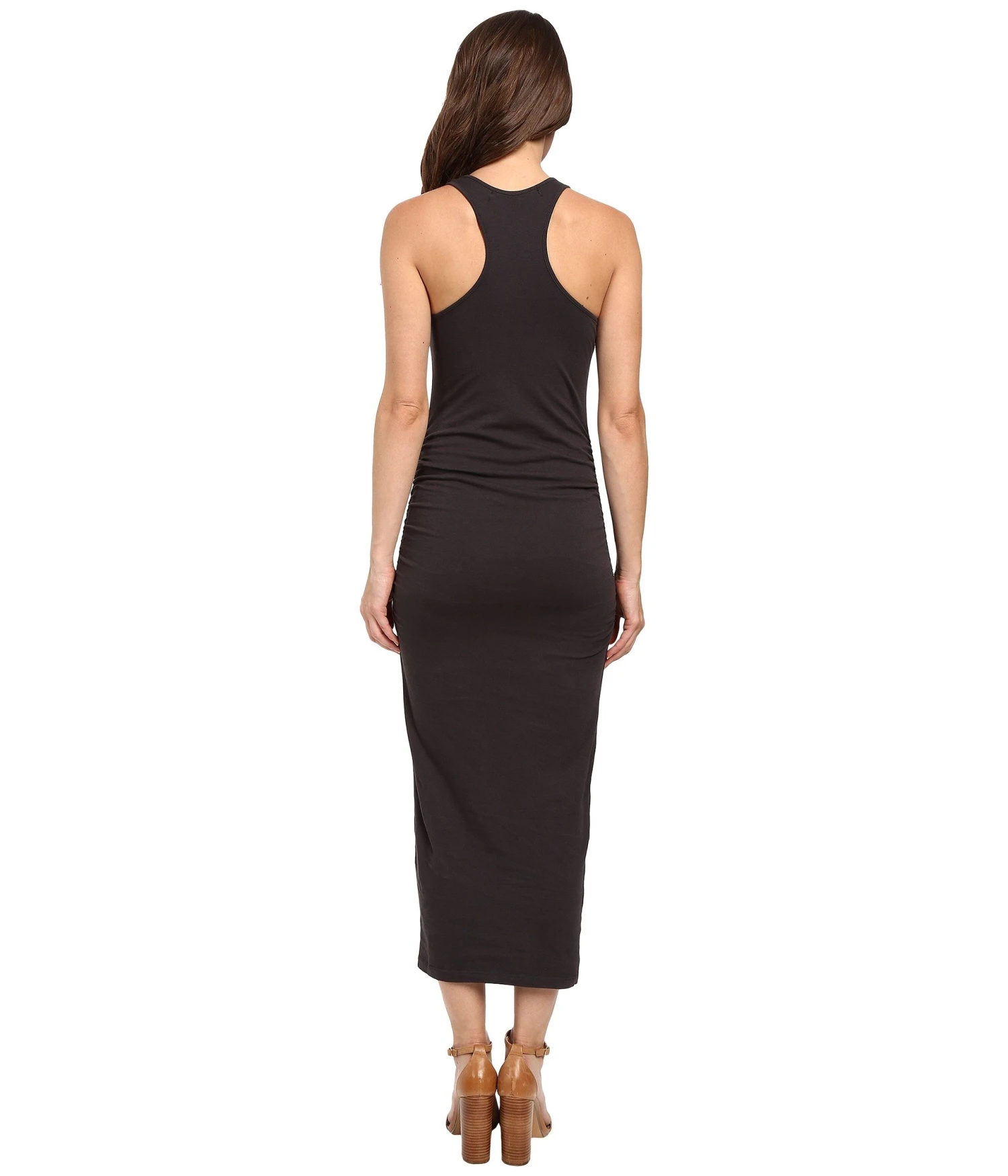 - Flatter your figure in this Michael Stars™ racerback midi dress. This soft jersey dress features gathering at sides and an easy pullover racerback design.