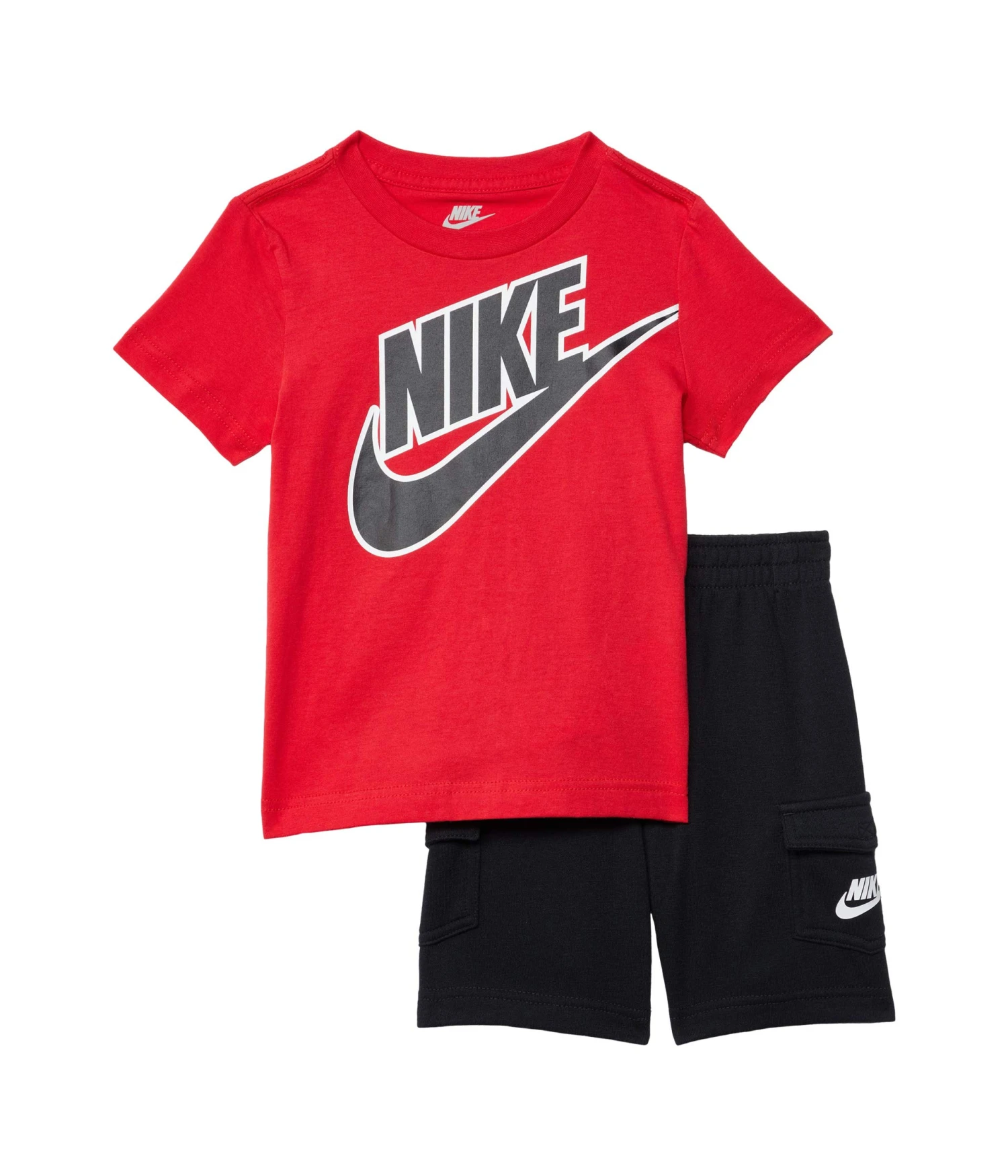 - Have him play date ready in a sporty look wearing the Nike® Kids Sportswear Graphic T-Shirt and Cargo Shorts Two-Piece Set. This cotton-blend set comes complete with a T-shirt and coordinating shorts to keep his style trendy!