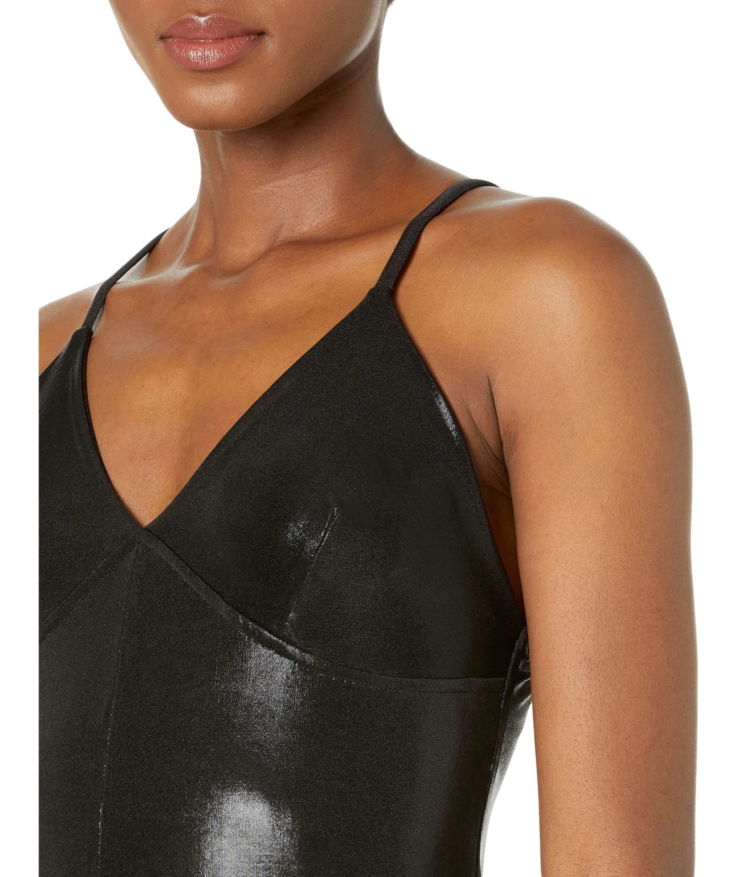 - Plunging V-neckline with thin shoulder straps.