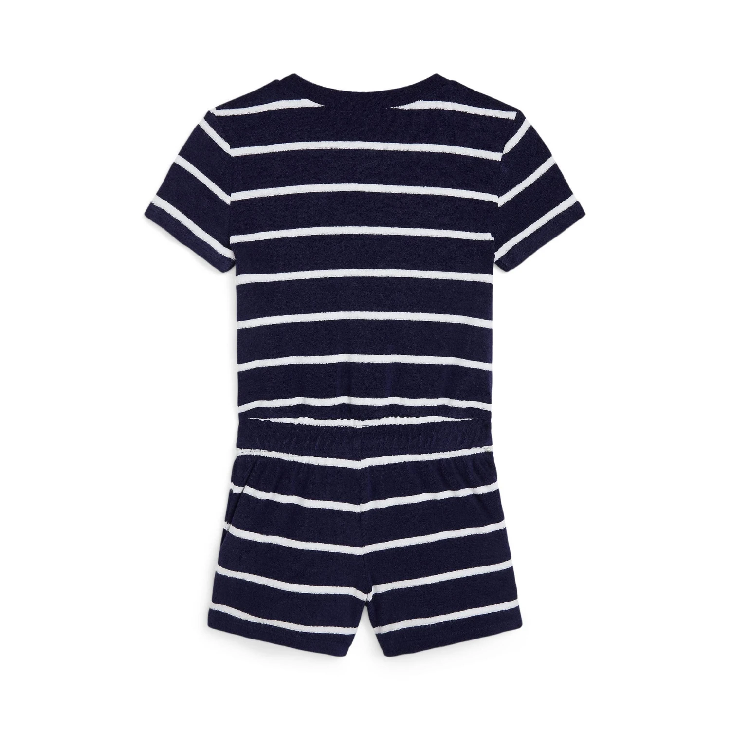 - Amp up your kid’s wardrobe by adding this super-comfortable Polo Ralph Lauren® Kids Striped Terry Romper.