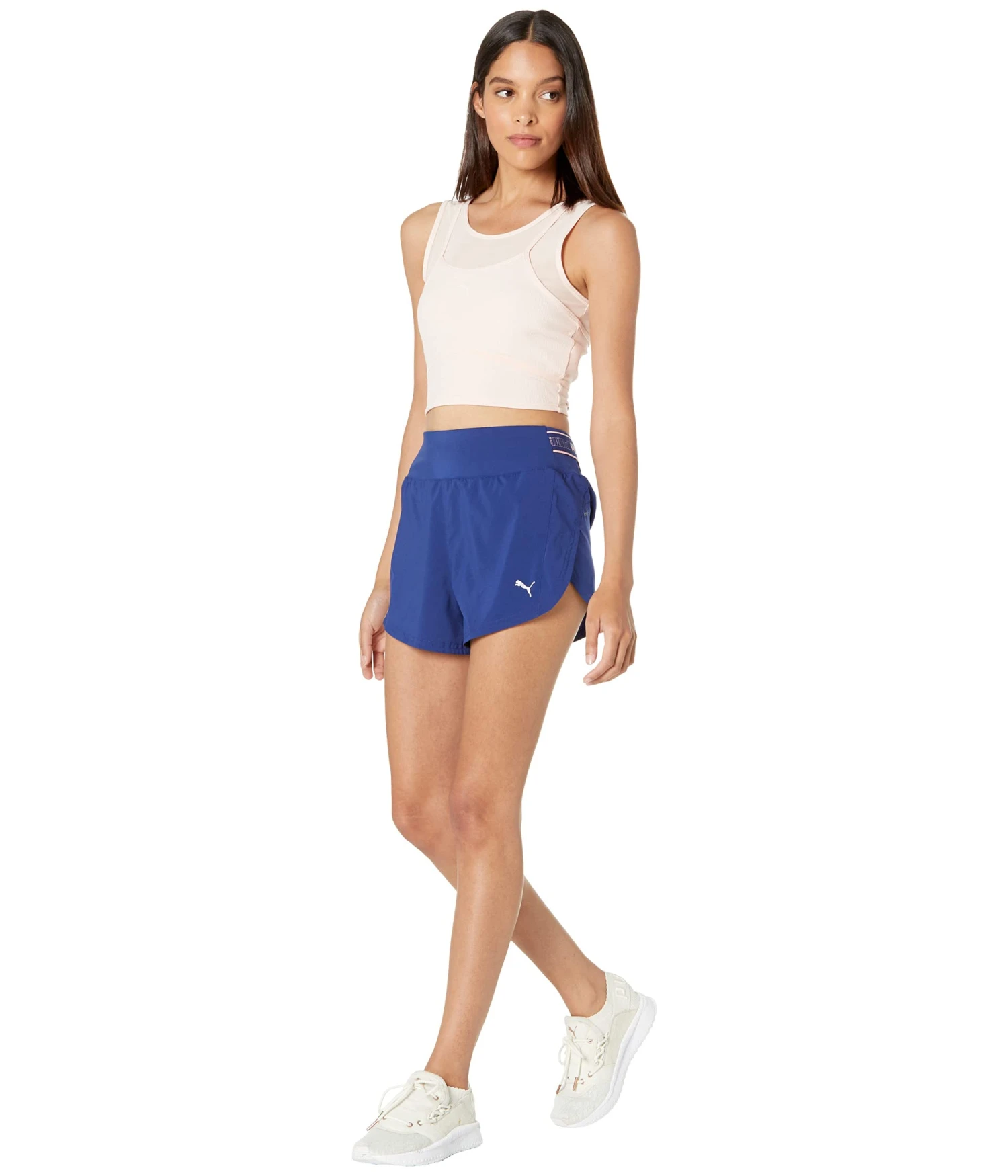 - Take on your cycling class or just your daily jog wearing the PUMA® Run Cooladapt Woven 3″ Shorts featuring a classic high waisted short with elasticized waistband constructed with a pocket in back of waistband and dryCELL performance fabric which wicks away perspiration to promote a comfortably dry personal climate boasting branding details and logo in lower left hemline.