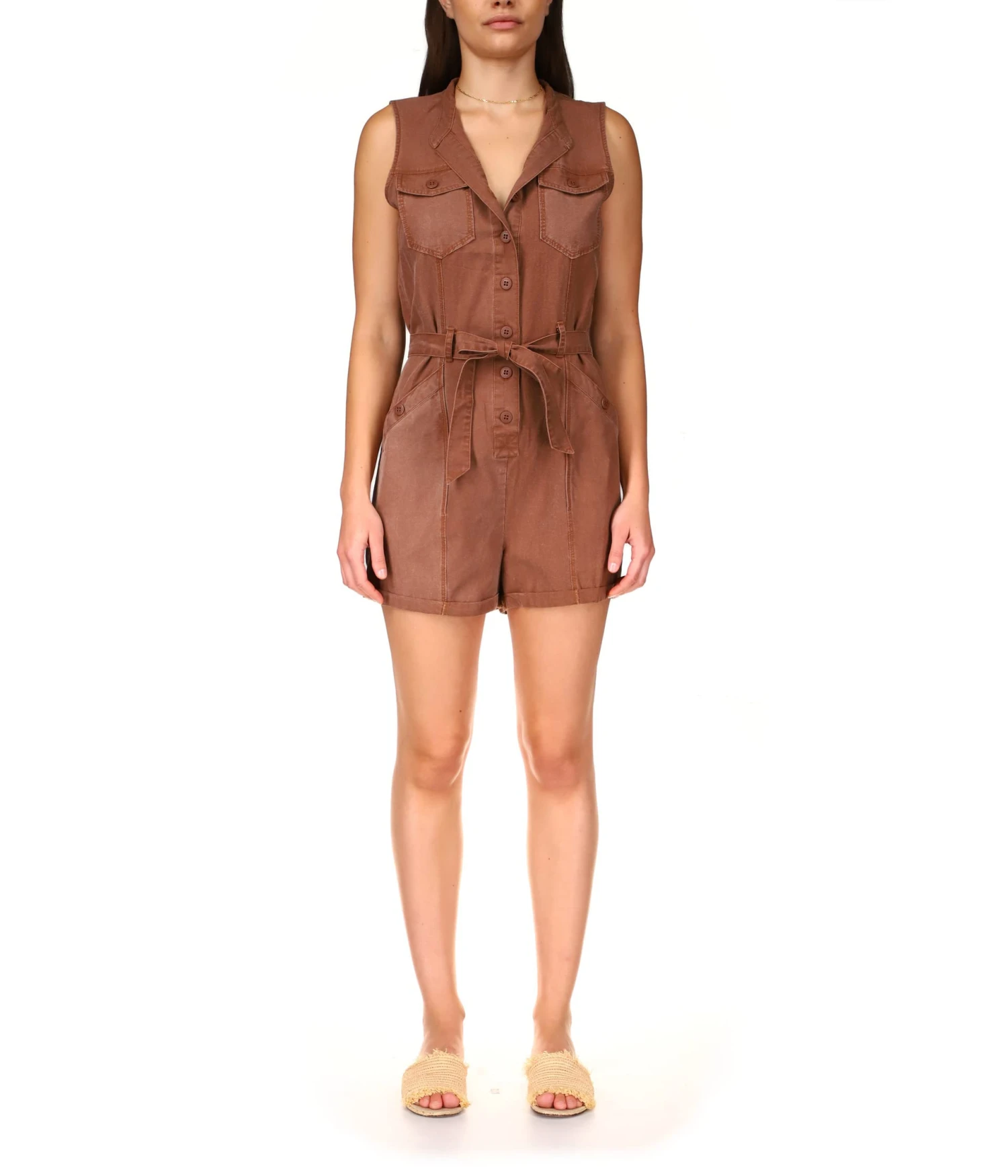 - Sanctuaryâ„¢ Sightseer Slub Twill Romper offers comfort and style.